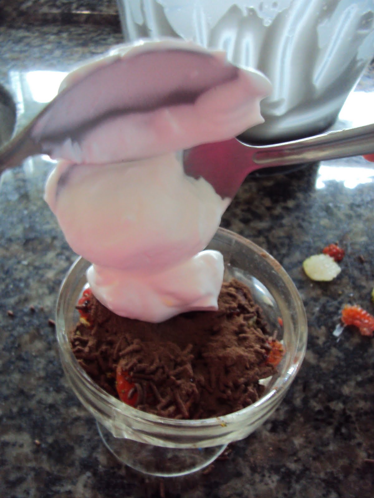 E acrescente mais um pouco de Granulado, e assim vai ficar sua sobremesa , rápida e deliciosa.